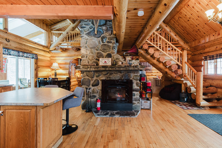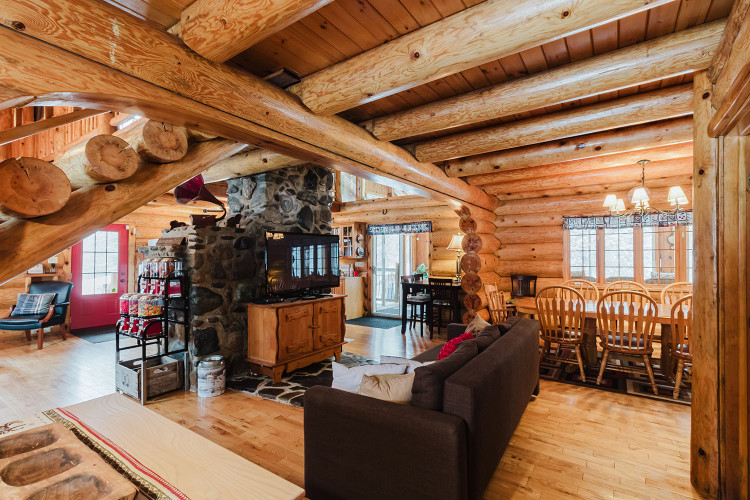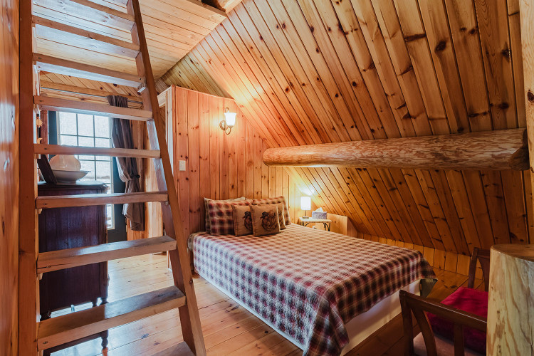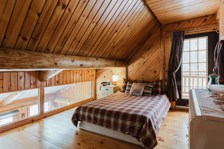 Profitez d'un environnement extérieur spectaculaire : un spa utilisable à l'année pour la détente sous les étoiles, une rivière en cascade avec zone de baignade rafraîchissante juste derrière le chalet, un boisé privé avec un charmant pont couvert, et des foyers extérieurs pour des soirées inoubliables et chaleureuses.